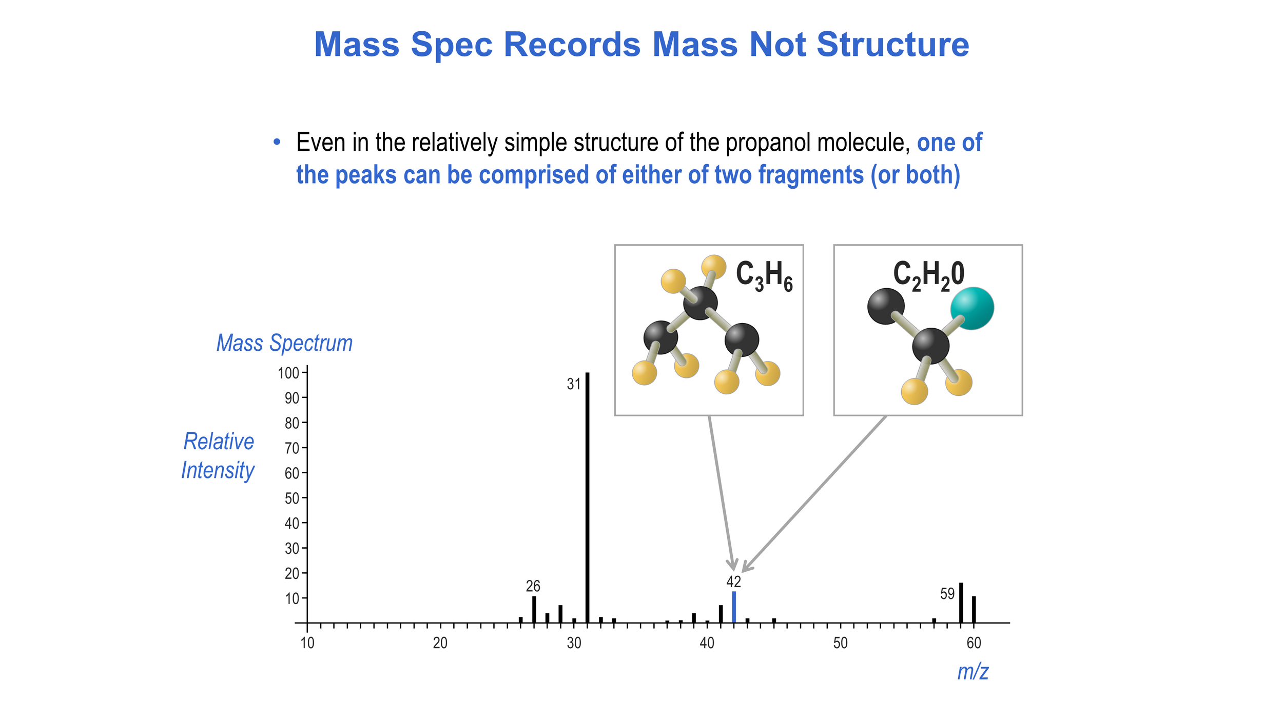 In the same matter, we continue with the simple models to show that a peak on the spectrum can show the presence of different chemical fragments that happen to share a particular mass.
