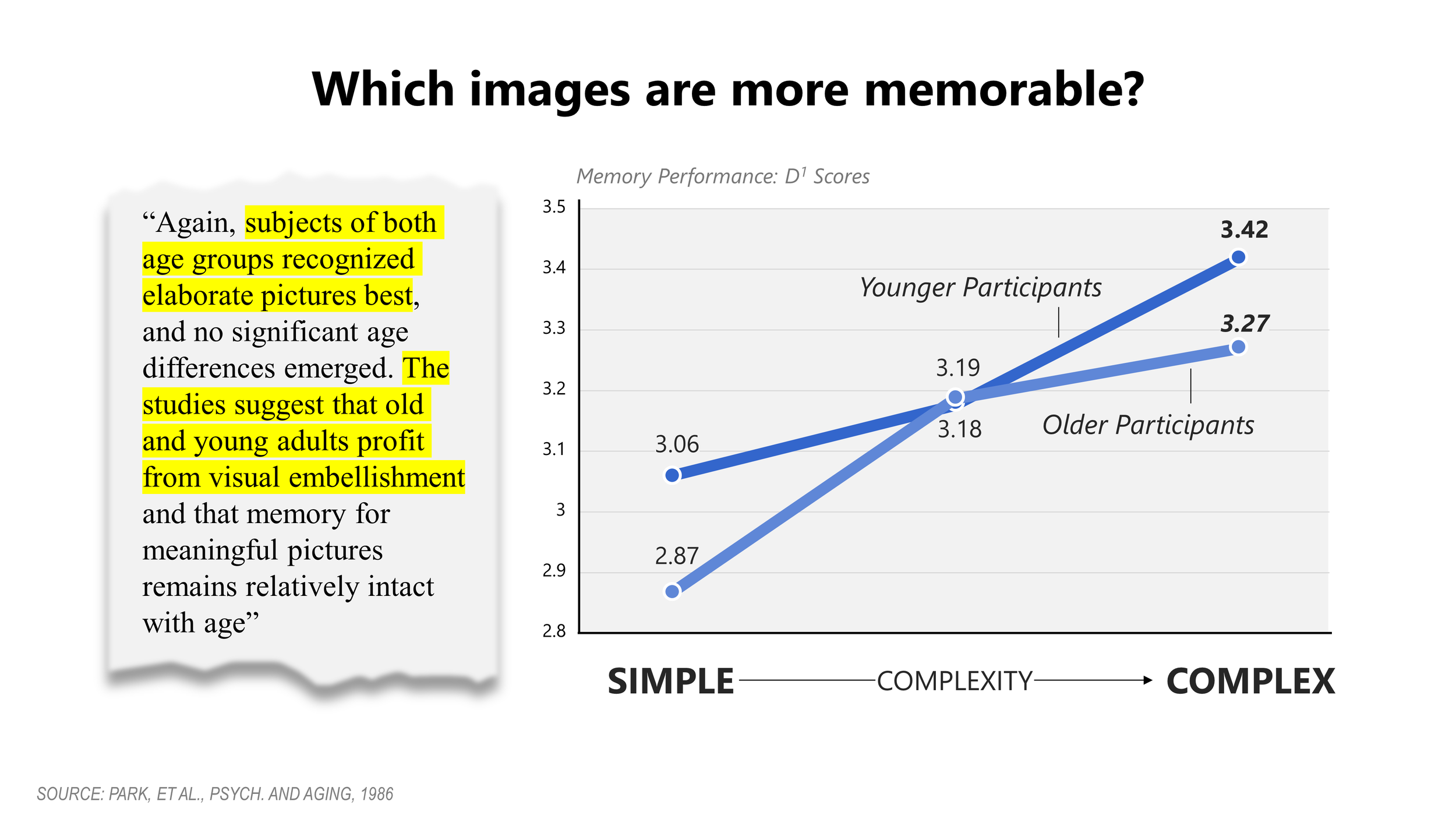 The findings of Park, et al in the 1980s supports my notion that less is not always more—and that jurors both recognize and remember information better when you show them a richer picture.